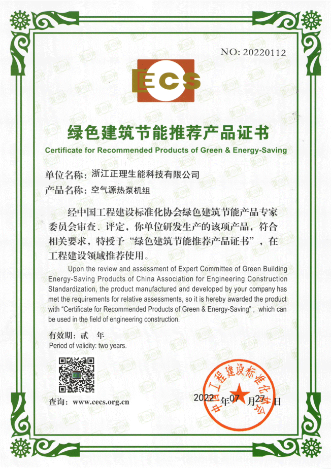 綠色建筑節能推薦產品證書