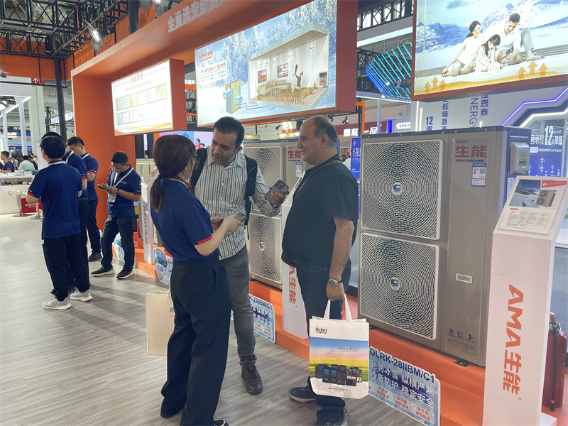 在生能空氣能展位E4-03現場,人員絡繹不絕,國際友人陸陸續續光顧,全國設計院總工團也現場觀摩。他們近距離了解生能品牌、產品、技術、服務等綜合實力,同時很多人對生能空氣能產品的性能、材質、參數、應用場景等做進一步交流了解。