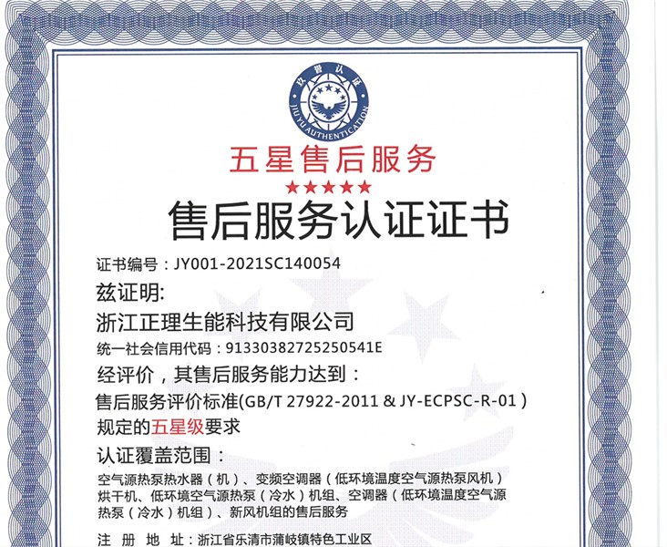 喜訊!生能空氣能連續四年榮獲五星售后服務···