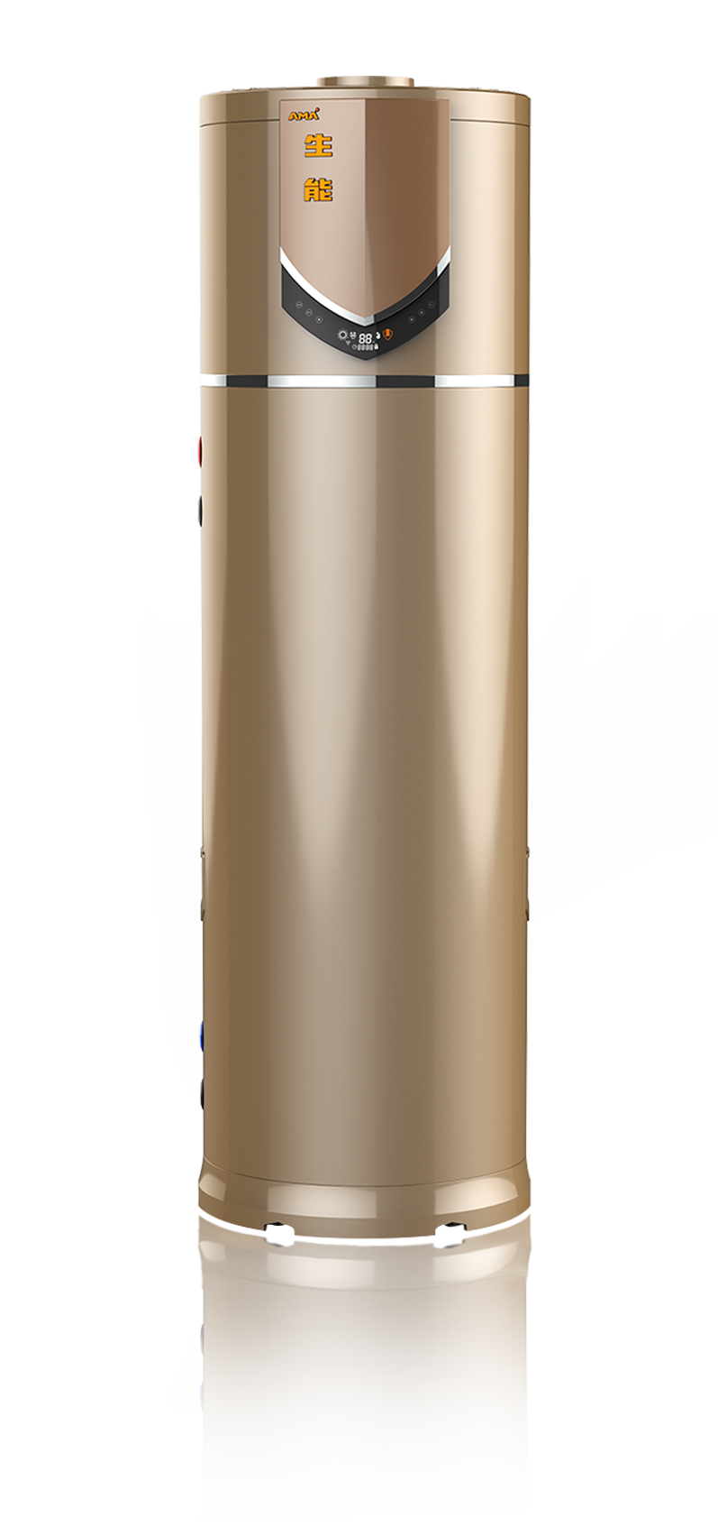 生能“空軍一號”系列:行業首創、中國首臺可以橫著放的空氣能熱水器,這一創新打破了空氣能熱水器只能“站著”的市場格局,實現了壁掛式的安裝可能。