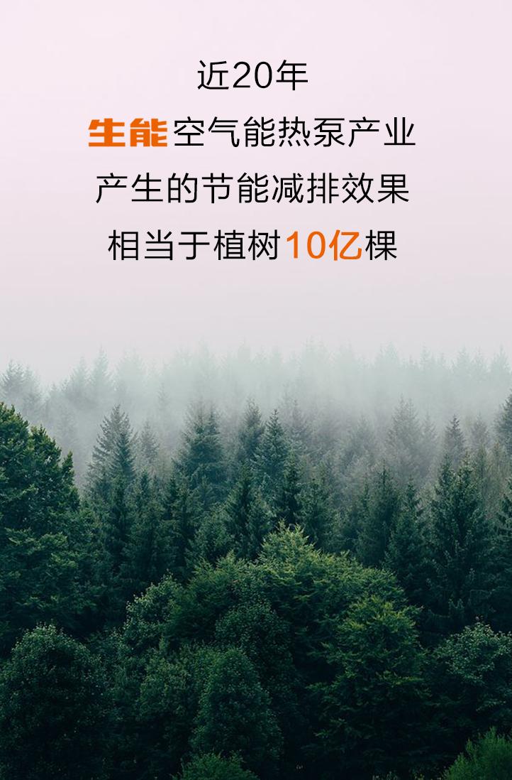 近20年,生能空氣能熱泵產業產生的節能減排效果相當于植樹10億棵