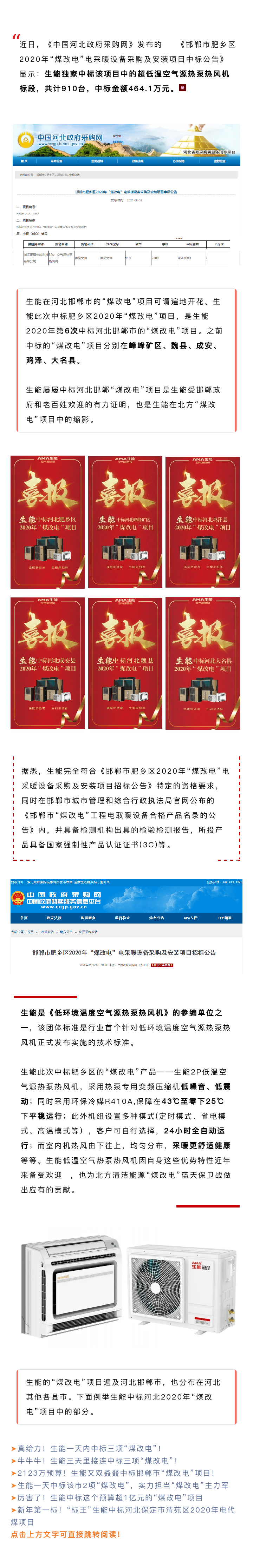 超給力!生能獨(dú)家中標(biāo)邯鄲市肥鄉(xiāng)區(qū)2020年“煤改電”空氣源熱泵項(xiàng)目!