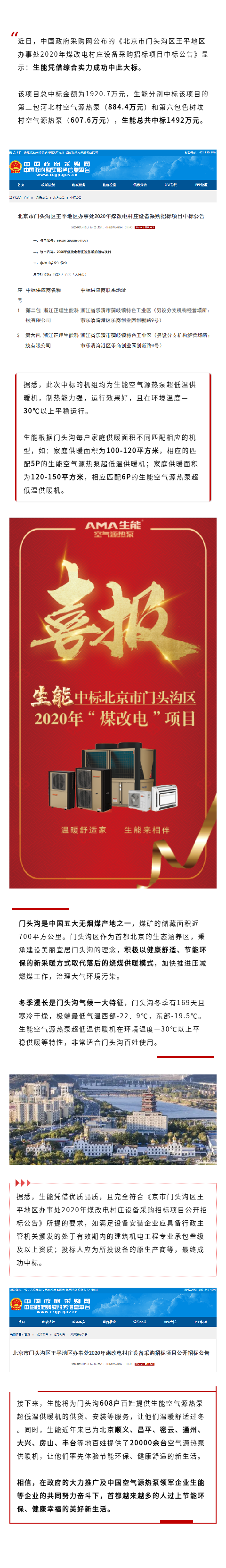 厲害了!生能喜中北京門頭溝“煤改電”大標!