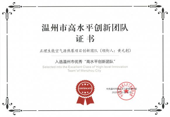 會上,浙江正理生能空氣源熱泵項目創新團隊榮獲“2020年溫州市高水平創新團隊”,姚高員市長現場為“2020年溫州市高水平創新團隊”頒獎。這是生能高水平專業建設的又一成果,也是對生能科技創新實力的又一次認可。