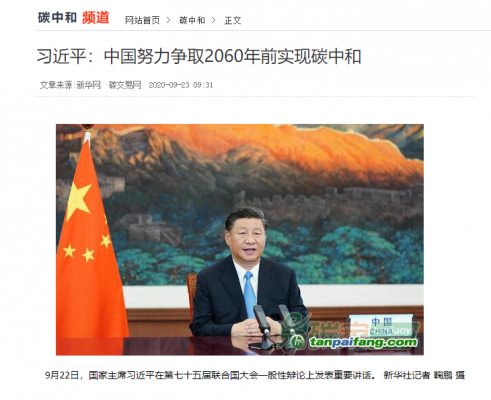 今年9月22日,我國在聯合國大會上提出,要“采取更有力的的政策和措施,二氧化碳排放力爭于2030年前達到峰值,努力爭取2060年前實現碳中和”。