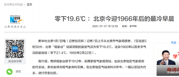 今年北京遭遇幾十年不遇的寒冬。1月7日清晨6時,北京南郊觀象臺氣溫降至-19.5℃,迎來1966年以來最冷清晨。