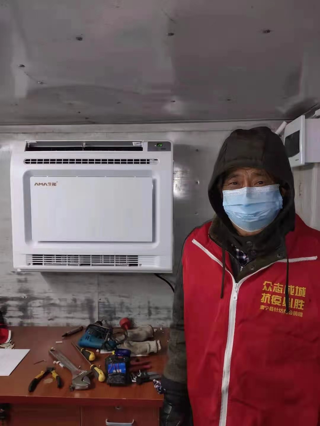 1月5日,生能空氣能在河北滄州肅寧的張總得知,臨時搭建的防疫站點沒有供暖設備,很冷,便代表生能空氣能第一時間捐贈生能空氣能熱風機,為防疫執勤人員送去溫暖,讓人人暖心也暖,助力疫情防控工作。