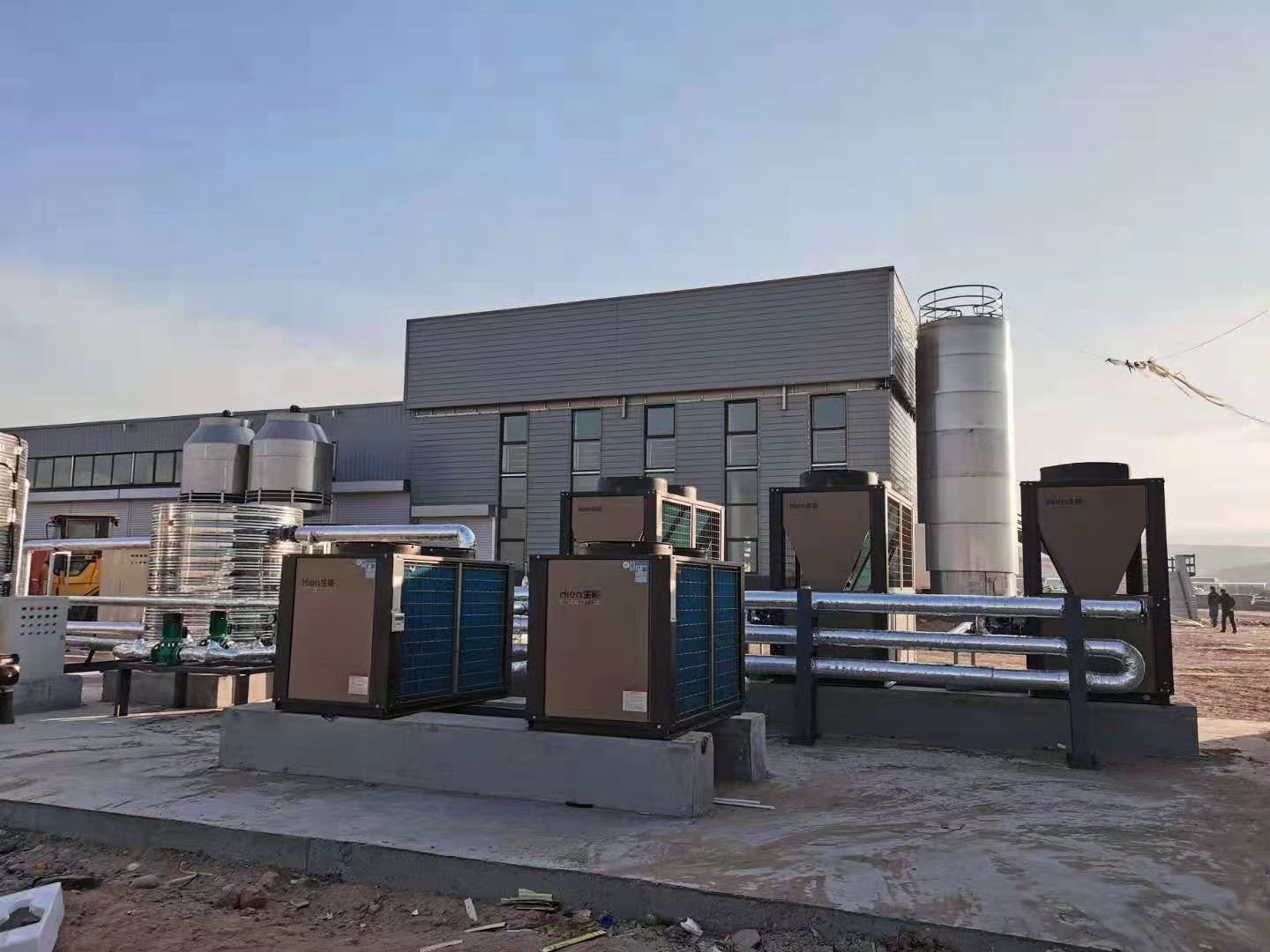 生能空氣能綜合聚牧農(nóng)牧業(yè)的各項(xiàng)情況,為其配置了3臺30匹的生能空氣能冷暖兩聯(lián)供滿足2000平方米擠奶廳冬暖夏涼、舒適每一天的需求;并配置了3臺70匹的生能空氣能供暖機(jī),滿足該公司辦公室和宿舍(共5000平方米)的健康舒適供暖需求;同時還為其配置了2臺10匹的空氣能熱水,滿足員工宿舍即開即熱舒適熱水的需求。