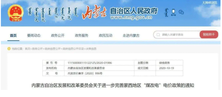 2020年10月,內(nèi)蒙古自治區(qū)發(fā)展和改革委員會(huì)發(fā)布了“內(nèi)蒙古自治區(qū)發(fā)展和改革委員會(huì)關(guān)于進(jìn)一步完善蒙西地區(qū)‘煤改電’電價(jià)政策的通知”。