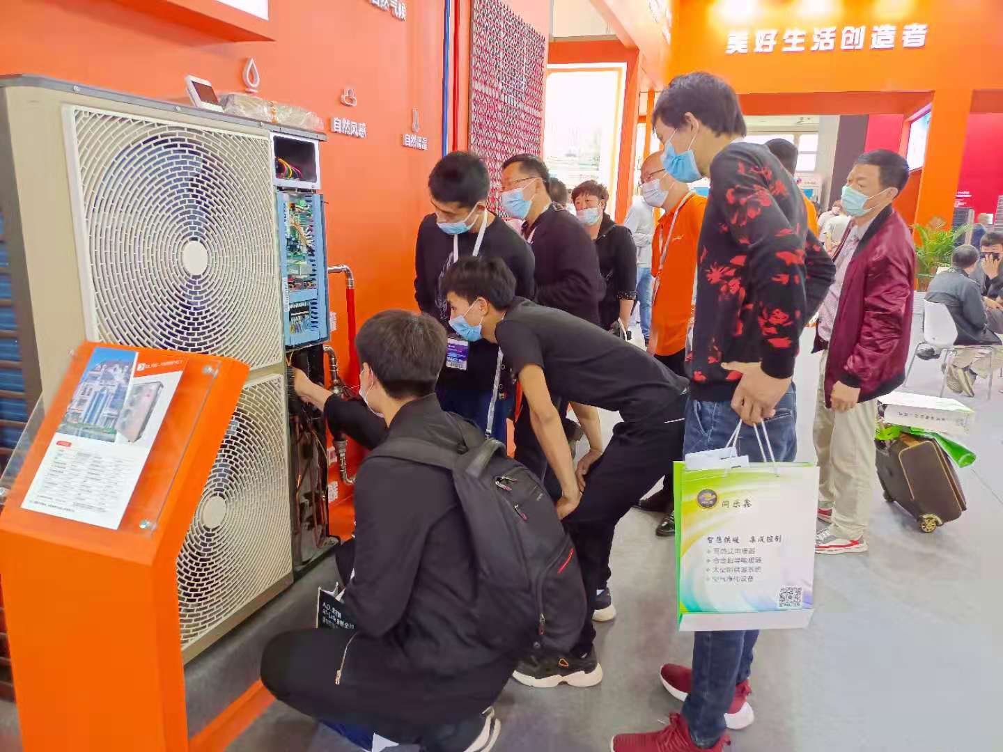生能6P超低溫變頻空氣源熱泵冷暖兩聯供(帶中央空調的地暖)展示墻延續第一天的火熱(點此了解生能參展首日場景:中國供熱展首日:生能展位現場火熱非凡,精彩不容錯過!),參展人員絡繹不絕地圍在一起現場觀摩了解。