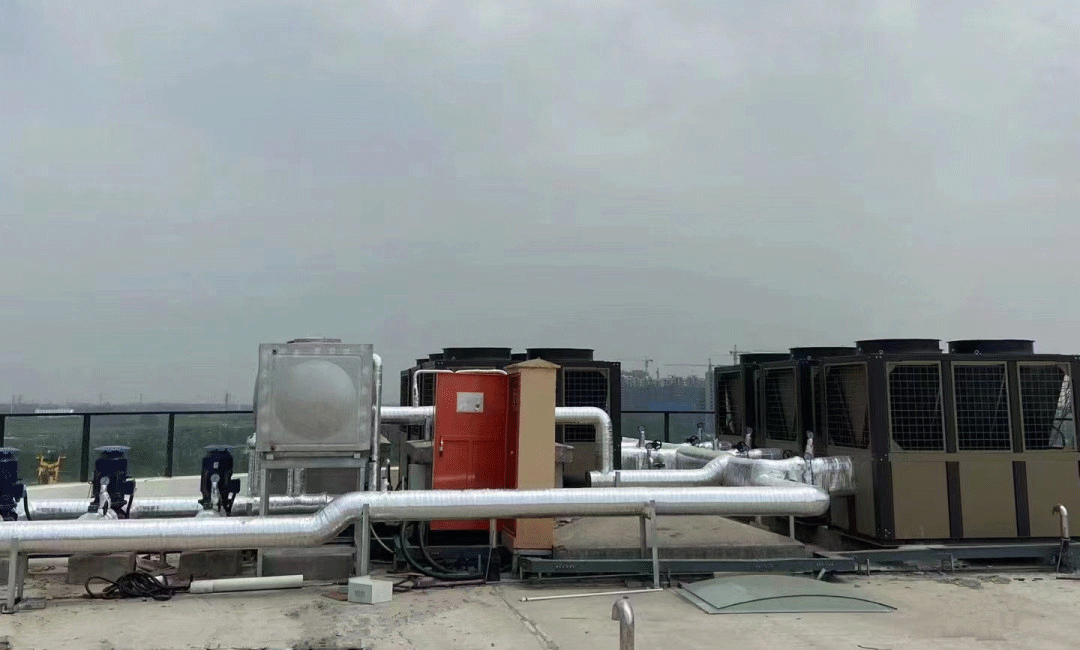 在河北邢臺月晟燕園科技園售樓處樓頂,6臺60匹的生能空氣能熱泵冷暖兩聯(lián)供機組威武氣派,為該幢樓負一層到五層共6000平方米提供夏季制冷和冬季取暖兩種需求,煞為壯觀醒目。