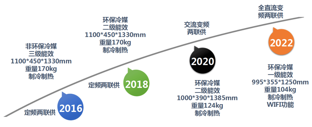 窺一斑而知全豹。以下以生能空氣源熱泵超低溫冷暖兩聯供三相電15kw機組為例,以一張圖的方式一目了然講講它的發展歷程,以此感受生能產品持續升級創新。