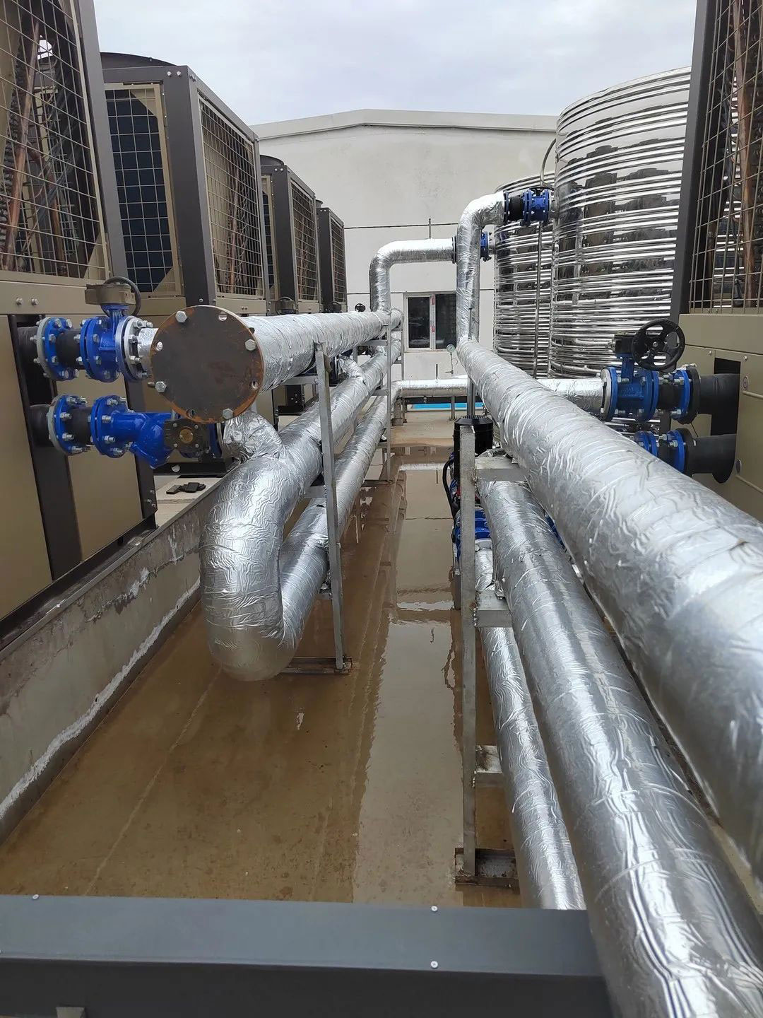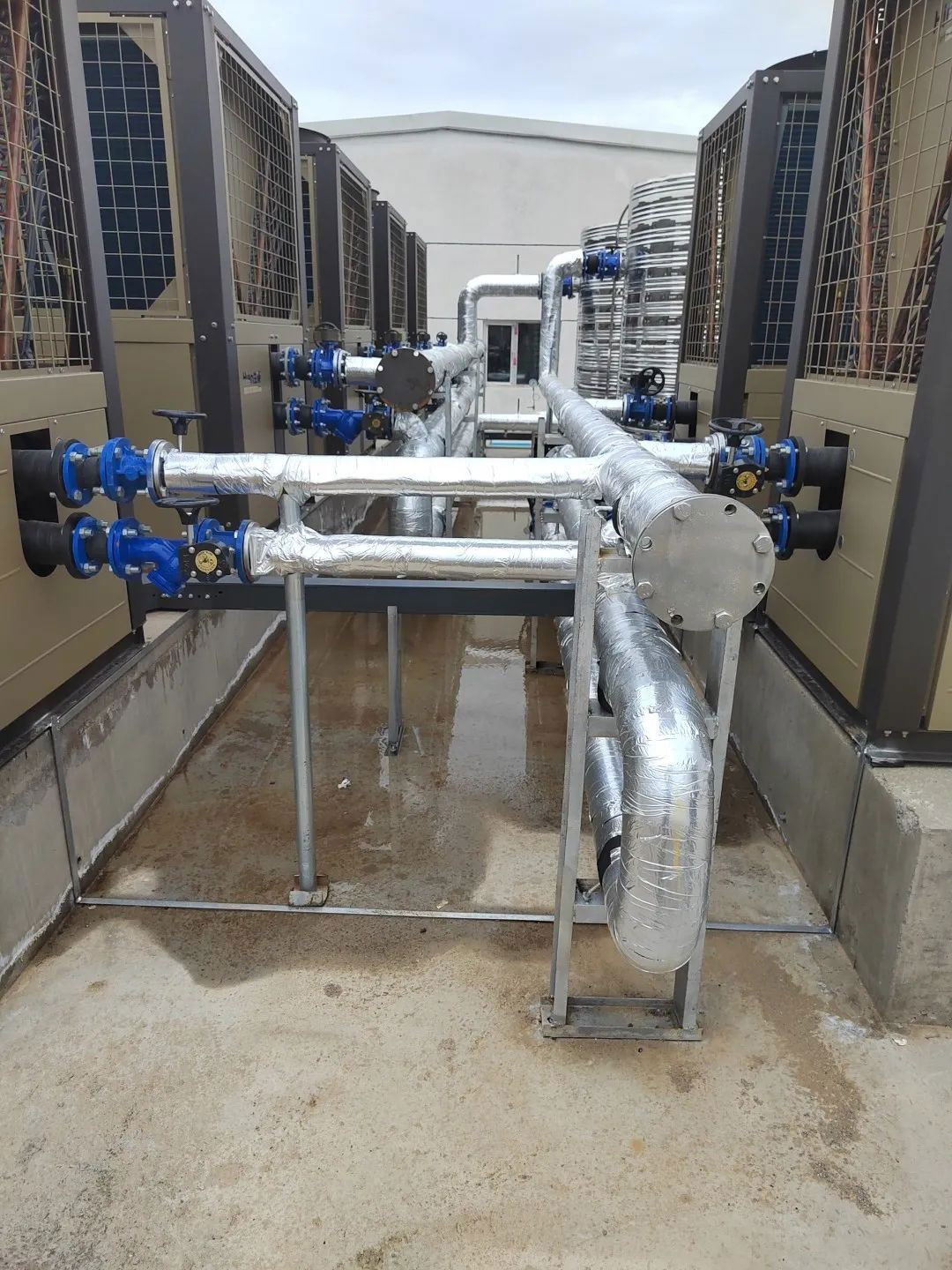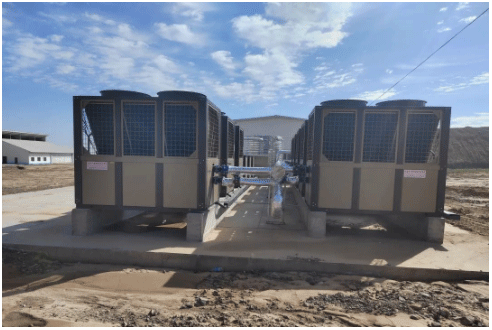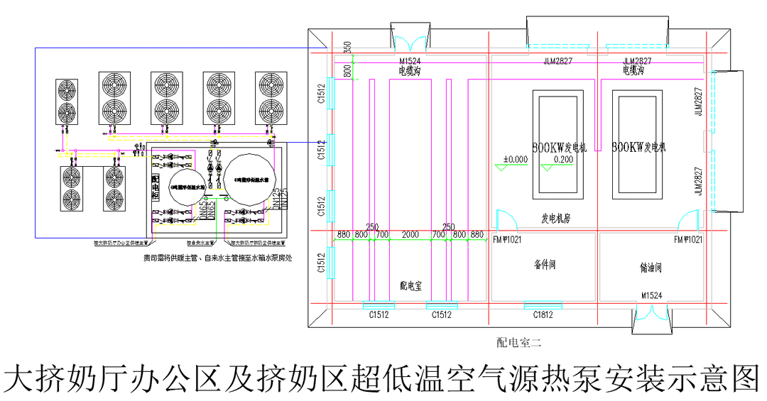 職工宿舍、辦公樓及餐廳及餐廳、消毒更衣室及水泵房控制室:各辦公樓及餐廳1268㎡,職工宿舍4788㎡,消毒更衣室423㎡,水泵房控制室120㎡。生能為其相應(yīng)配置了6臺(tái)DLRK-160II生能超低溫空氣源熱泵冷暖機(jī)組,保障其冬季供暖室內(nèi)溫度可達(dá)18-22℃左右。