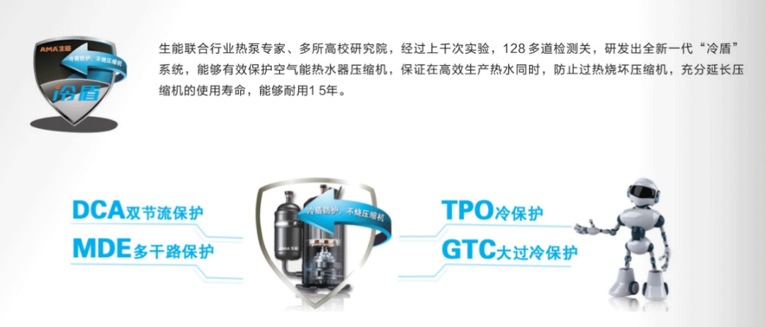 生能自主研發(fā)的冷盾技術(shù),保證在高效生產(chǎn)熱水的同時,防止過熱燒壞壓縮機(jī),充分延長壓縮機(jī)使用壽命,能夠耐用15年。與此同時,生能空氣能熱水器還安全又省電。