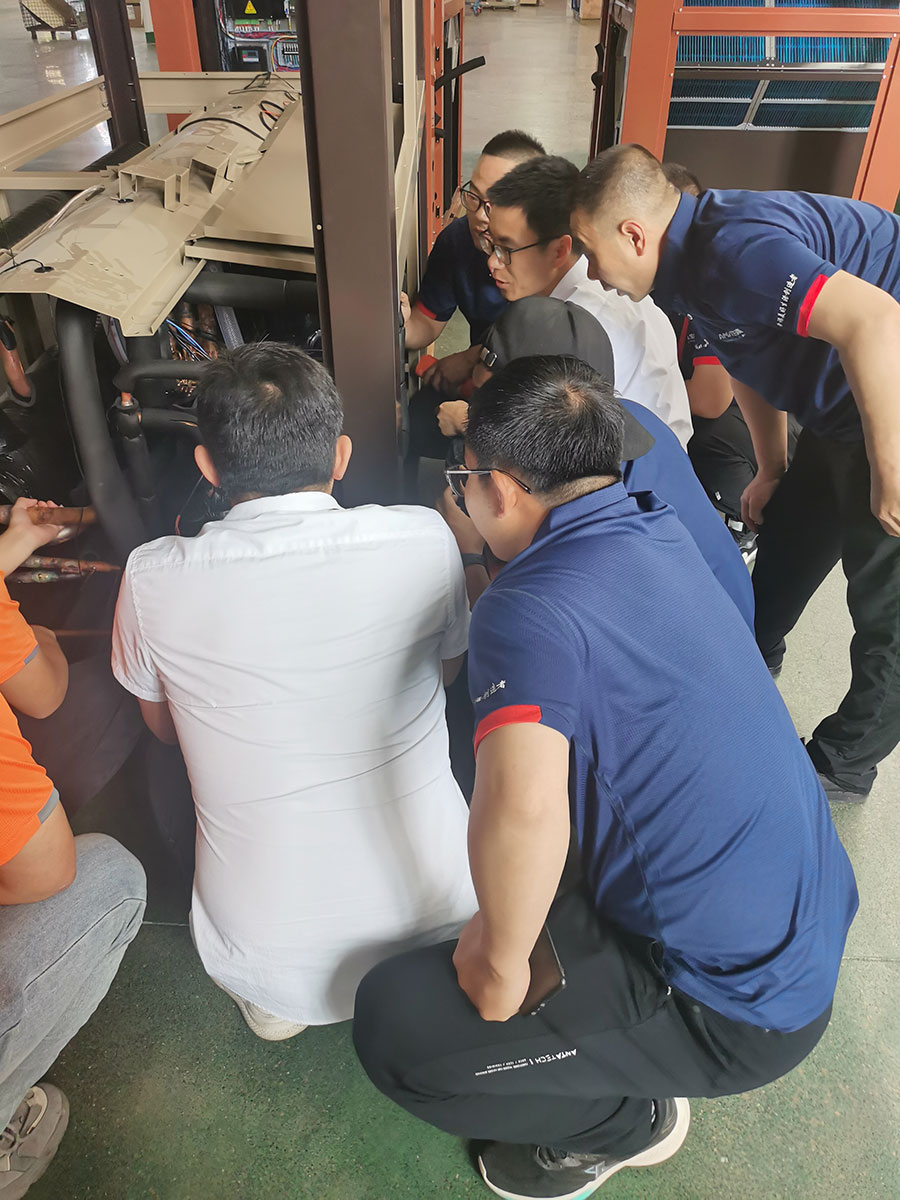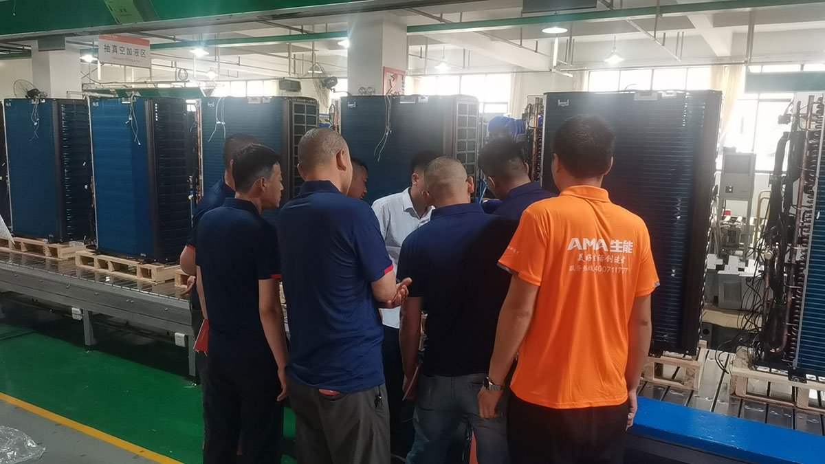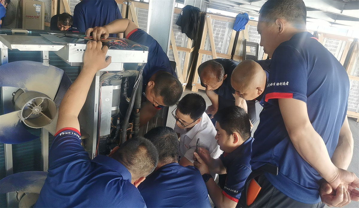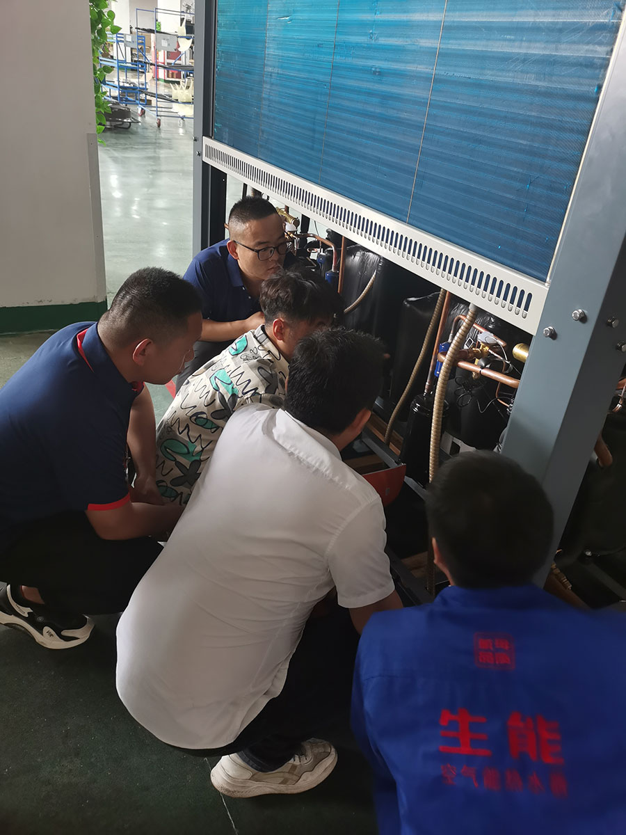 培訓現場,生能空氣能學員們深入車間現場觀看機組構造、生產過程,了解工藝,拆解電機、測量儀表等,并實踐操作。生能空氣能學員們三五成群,在邊看邊聽邊做的過程中,逐漸鍛煉自己的技能,同時在生能空氣能專業售后人員的指導下改進自身不足,提升個人專業水平。千里迢迢從新疆過來的生能空氣能廖總表示,自己懂一些技術,更多時候靠經驗、靠市場大眾化來做,通過這次系統學習充電,可以全面規范掌握專業技能,讓安裝、售后等更正規、更標準化。