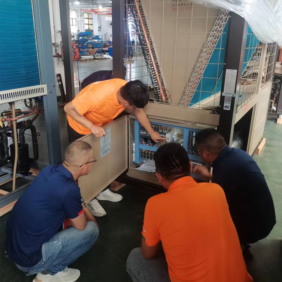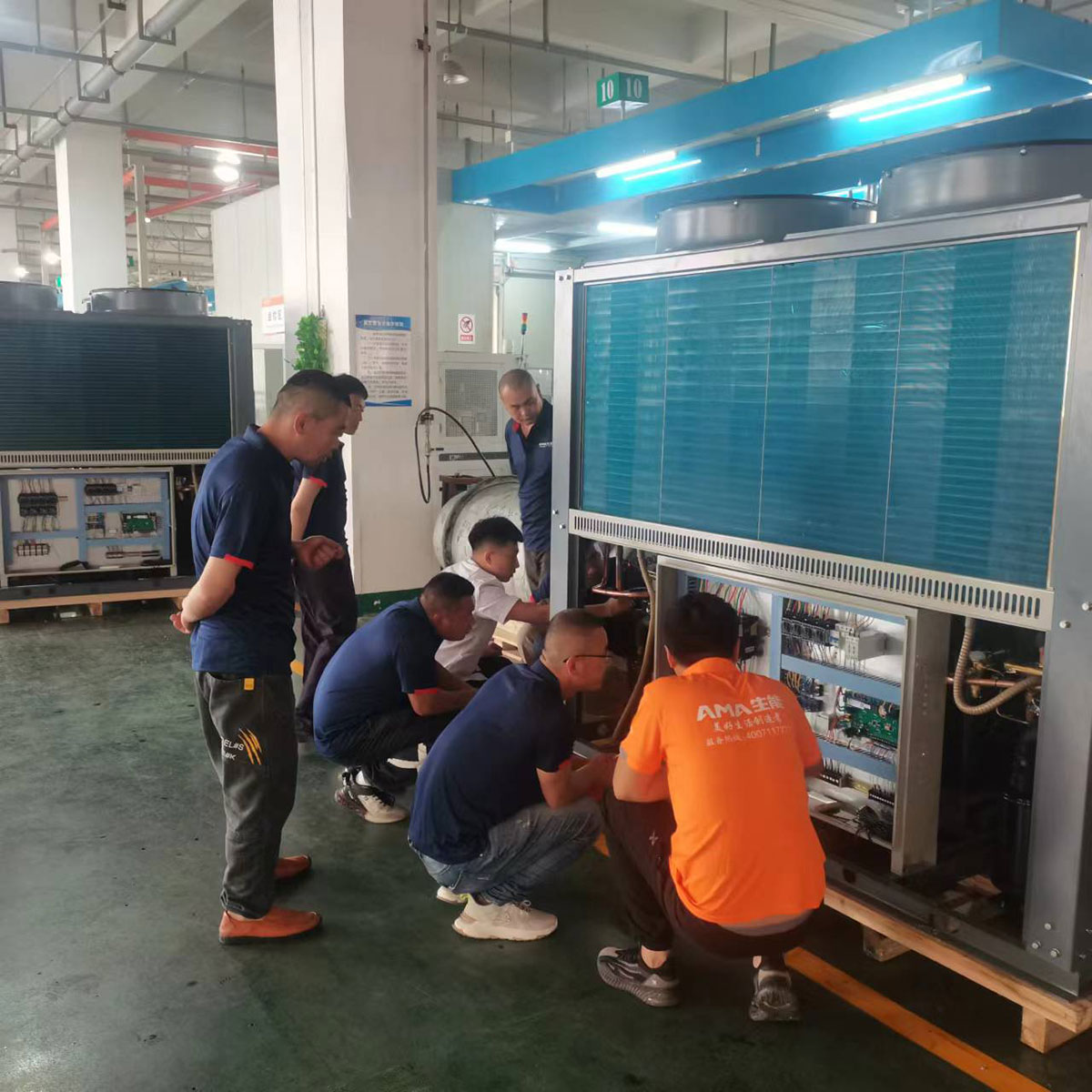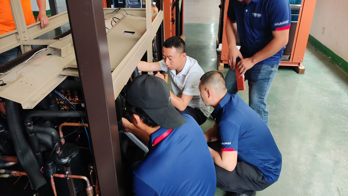 培訓現場,生能空氣能學員們深入車間現場觀看機組構造、生產過程,了解工藝,拆解電機、測量儀表等,并實踐操作。生能空氣能學員們三五成群,在邊看邊聽邊做的過程中,逐漸鍛煉自己的技能,同時在生能空氣能專業售后人員的指導下改進自身不足,提升個人專業水平。千里迢迢從新疆過來的生能空氣能廖總表示,自己懂一些技術,更多時候靠經驗、靠市場大眾化來做,通過這次系統學習充電,可以全面規范掌握專業技能,讓安裝、售后等更正規、更標準化。