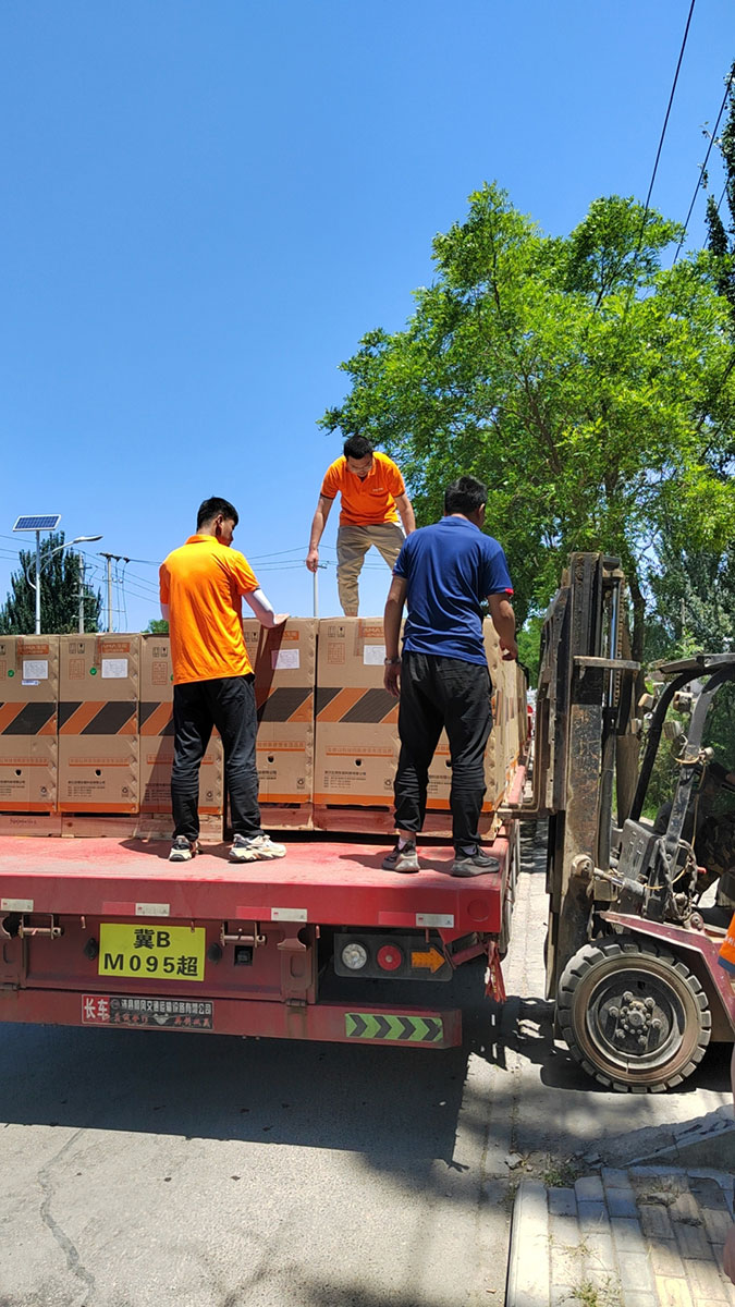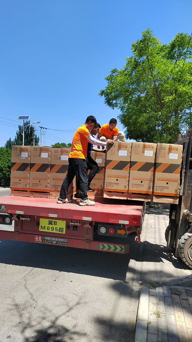 生能空氣能機組一車又一車地到達寧夏,寧夏生能空氣能人一起協助將生能空氣能機組完好無損的一一卸下來。昨日(6月13日),第12-16車生能空氣能機組(共864臺)相繼到達寧夏靈武市指定位置,當地人員連夜卸貨,毫不耽擱,圓滿落地。
