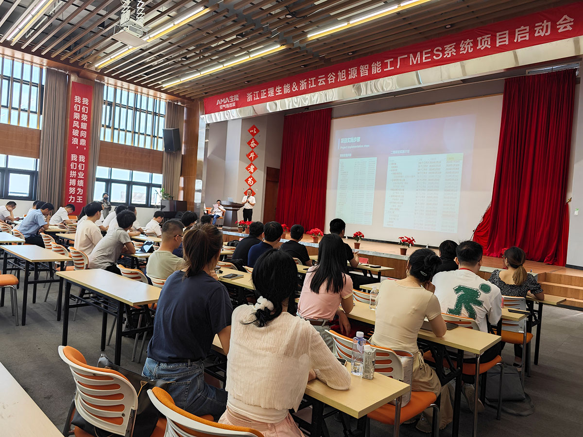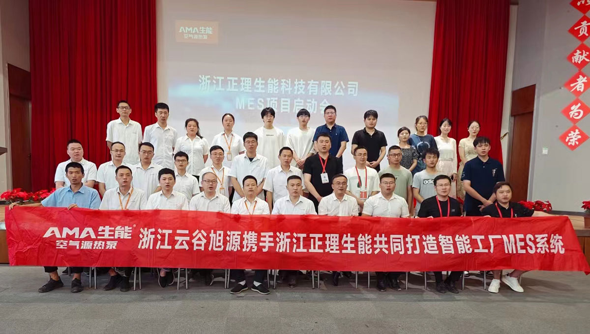 7月6日,浙江正理生能&浙江云谷旭源智能工廠MES系統項目啟動會,在生能空氣能七樓多功能廳順利召開。生能空氣能常務副總王亮、生產中心副總監范葉宏、副總監兼首席質量官胡亭亭、財務部副總監陳光俊、研發中心技術總監仇春偉、信息部經理胡旭光和云谷旭源總經理高亞軍、營銷總監吳海書、研發總工齊鳴鳴等主要項目負責人出席此次啟動會。