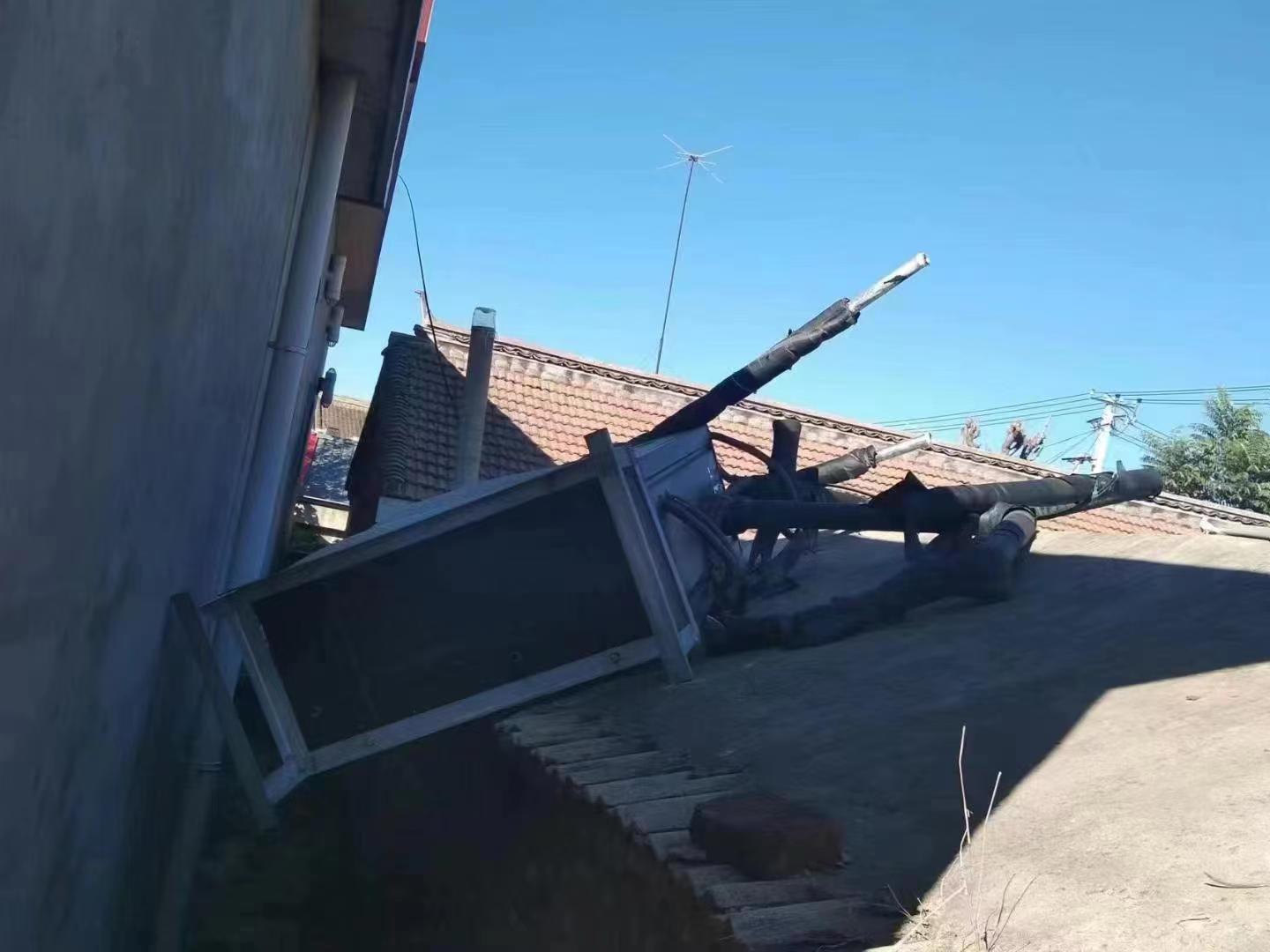 因底角沒做好固定被吹倒的空氣能機(jī)組