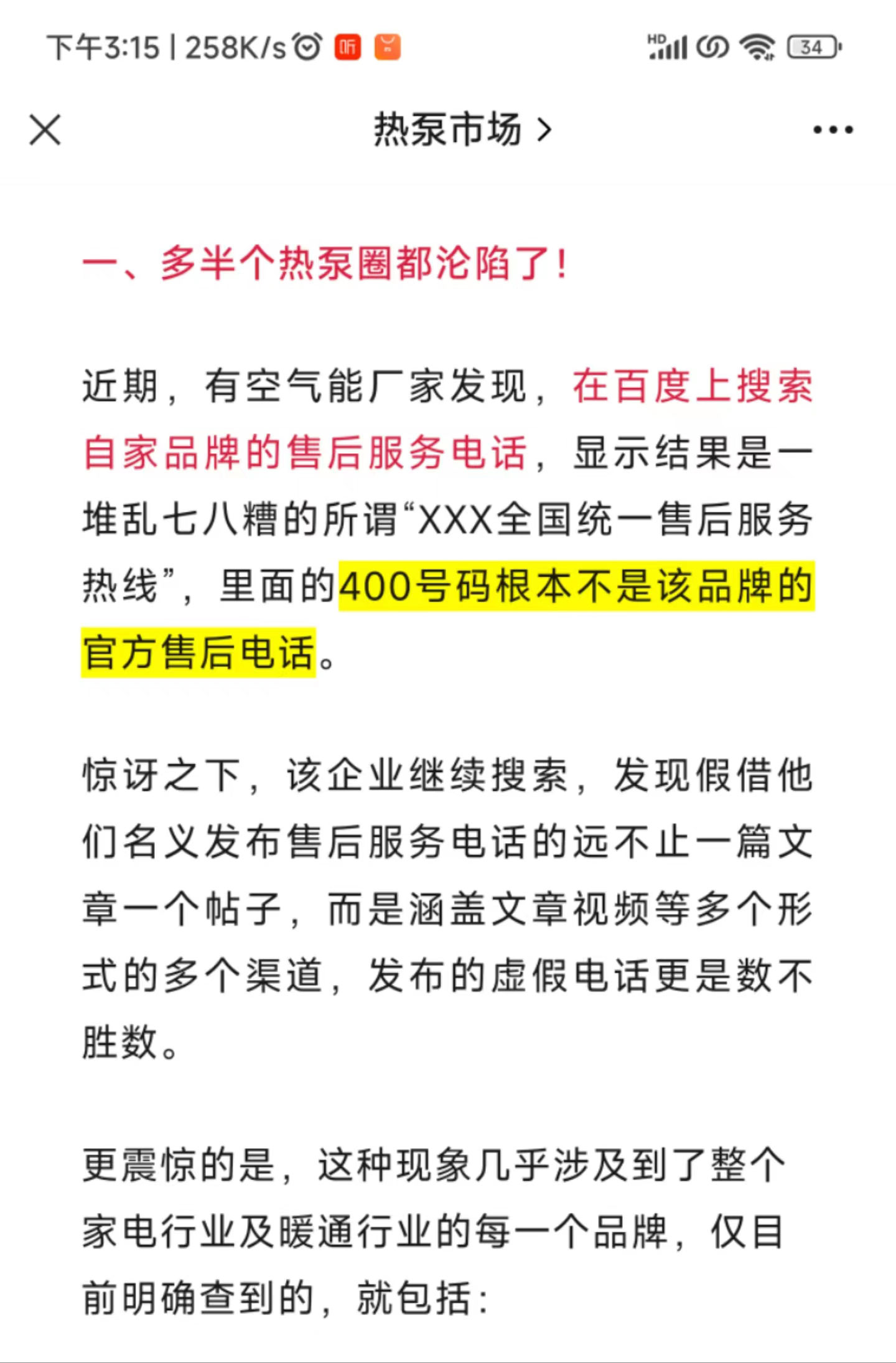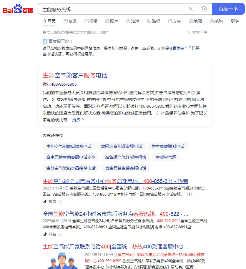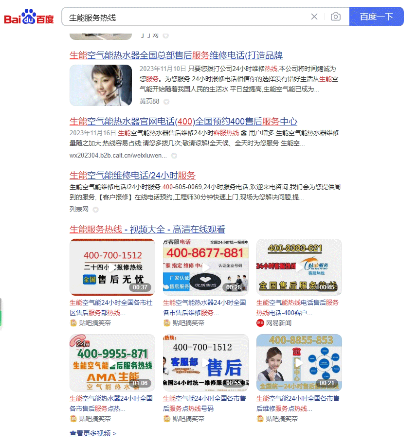 有用戶在百度搜到生能空氣能400售后服務熱線