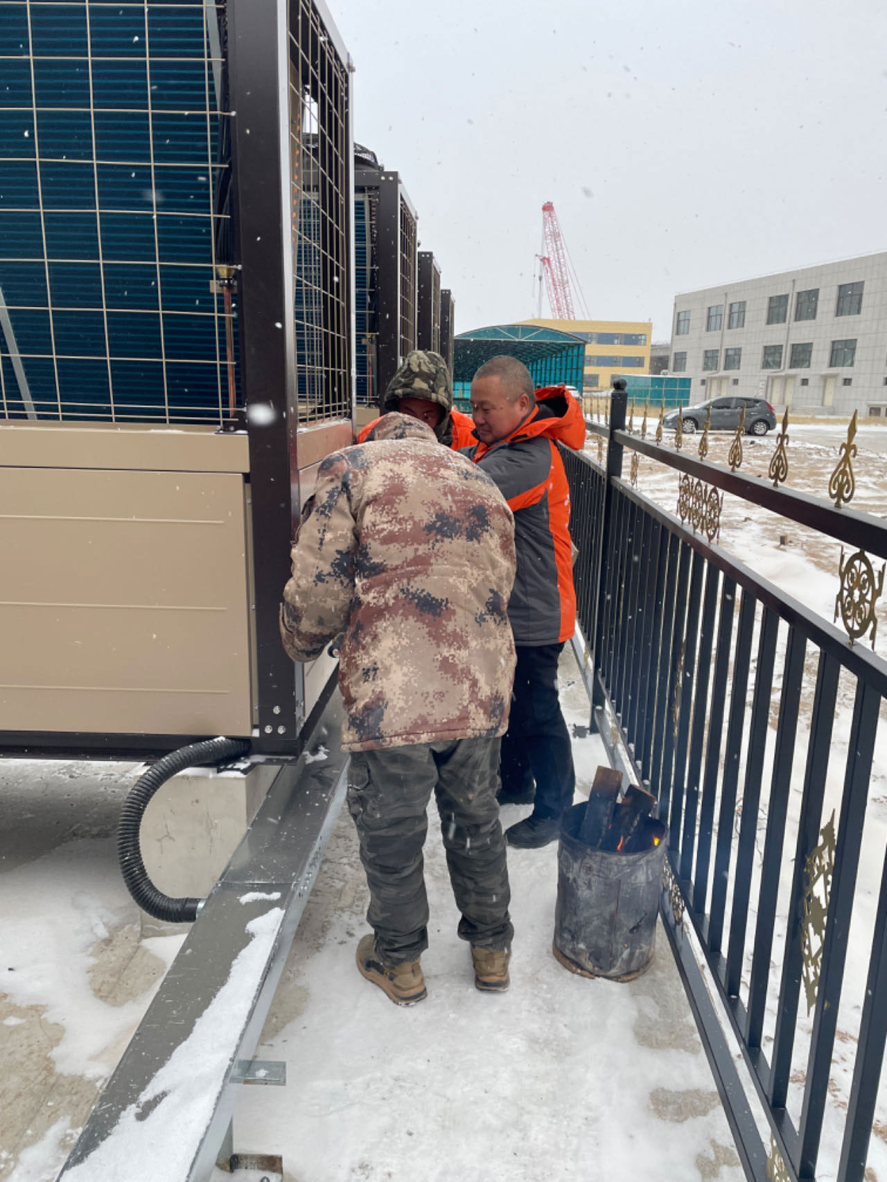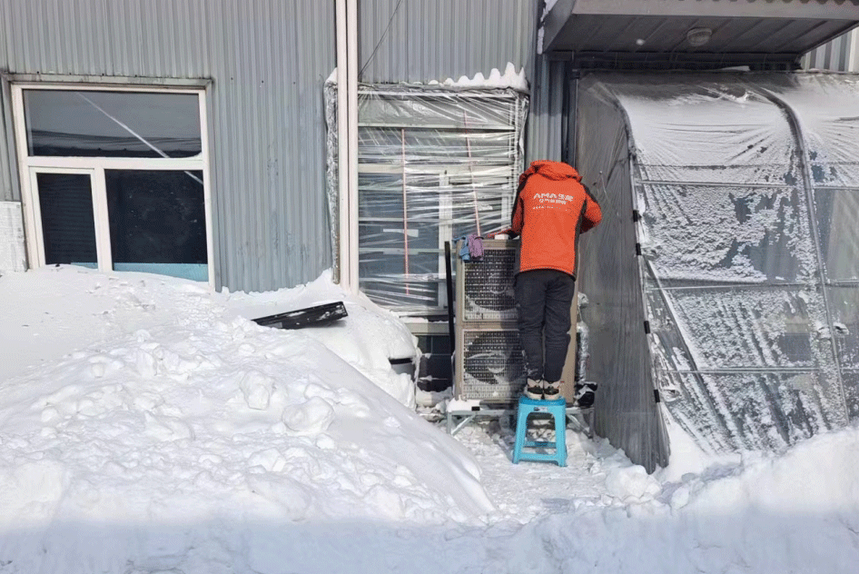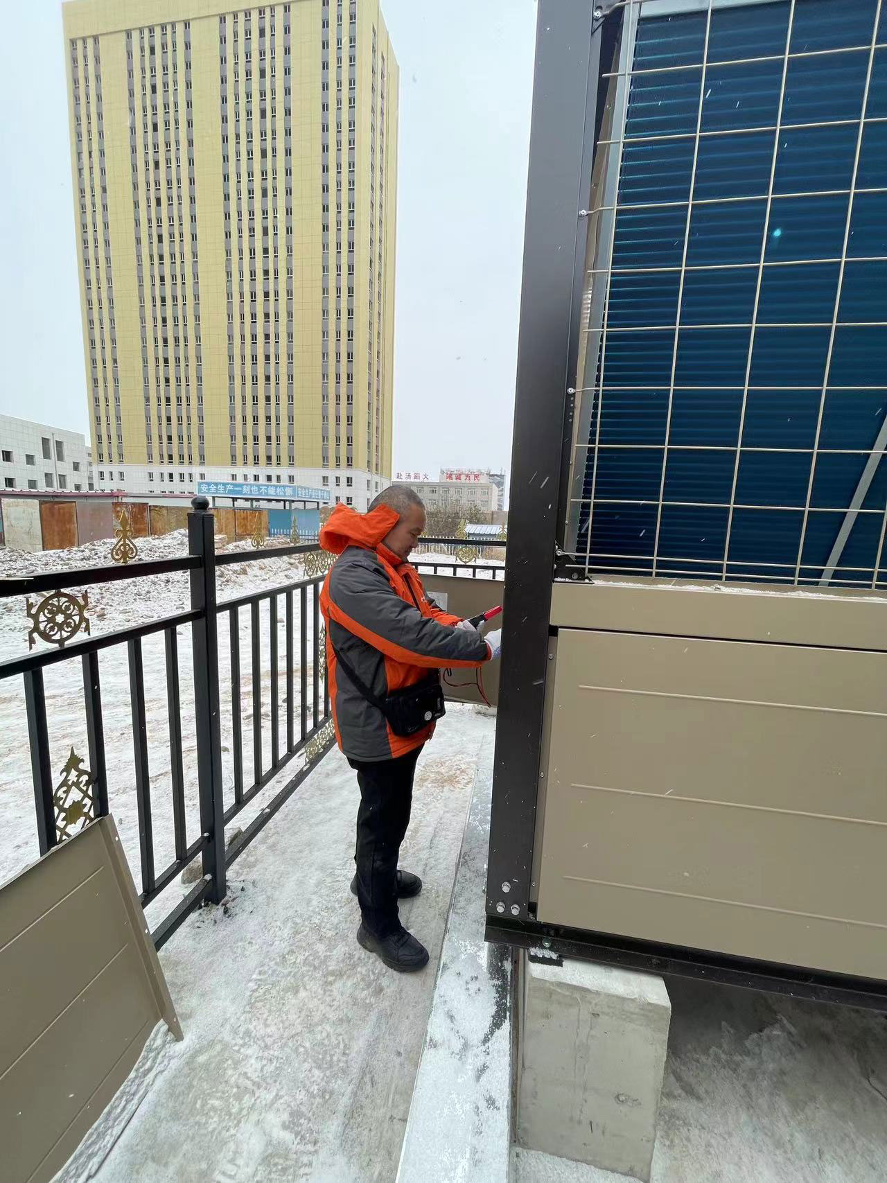 感受生能空氣能人在寒冷冬日里