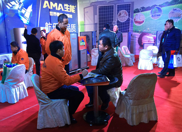 展會(huì)上,生能公司展出了13臺(tái)不同型號(hào)的空氣能熱水器,備受關(guān)注并全部搶售一空,工作人員的本子上記錄了滿滿的意向客戶資料。展會(huì)現(xiàn)場(chǎng)人山人海,除了山東、河北、河南、天津、山西等地的客戶來(lái)了解我們的產(chǎn)品之外,還有不少來(lái)自歐美的客戶對(duì)我們的產(chǎn)品產(chǎn)生了極大地興趣。