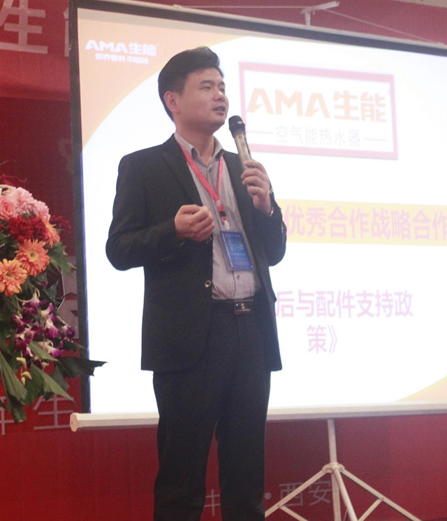 西北地區的負責人王東莊給在座合作商帶來空氣源熱泵采暖的培訓課程,王經理在西北區域耕耘多年,具有非常充足的采暖設計、安裝經驗。生能商學院售后培訓導師錢寧講解了生能家用機產品相較競品的具體優勢,家用和商用機組故障處理和安裝規范。生能方案設計師喻國興充分結合當地實例,講解如何運作空氣源熱泵招投標以及熱泵在恒溫泳池中的應用。