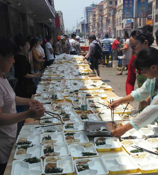 6月27日,生能第四批志愿者趕到災區現場。一場龍卷風,使得村莊內幾乎沒有一處完好的房屋,生能送來的一車盒飯很快發放完畢,群眾和救援者們紛紛搭起了露天灶臺,集體開飯。生能志愿者們二話不說,發完救援物資后,幫忙洗菜、切菜、炒菜、打飯,為群眾送上一份份香氣四溢的盒飯。隨后,來不及休息,大家齊心協力,幫助受災人民清理廢墟,清點財產。