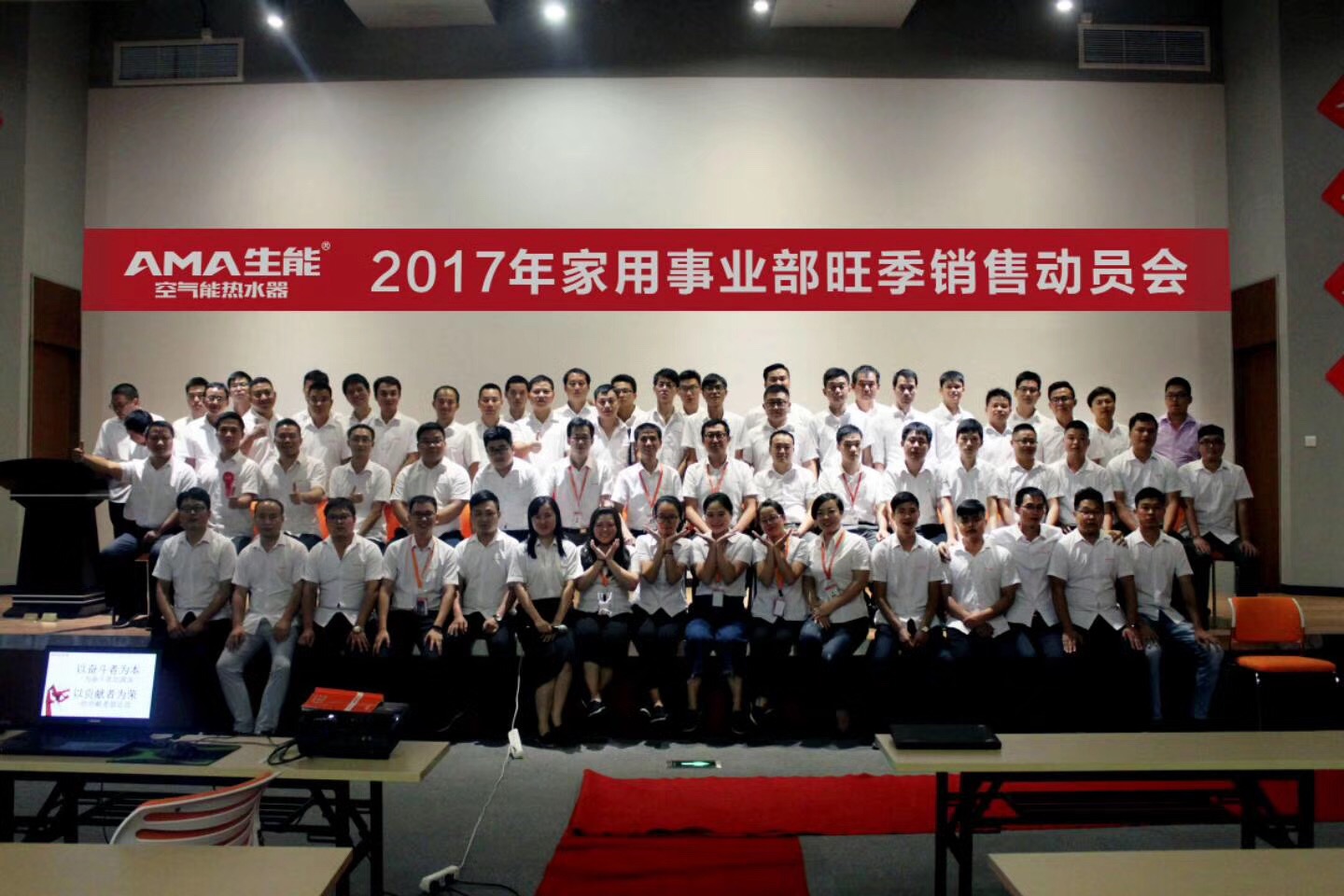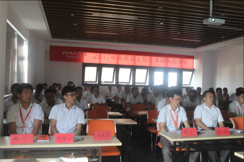2017年9月3日-5日,生能家用事業部在總部召開了旺季銷售動員會,董事長黃道德,董事長助理黎平,副總白寶紅,家用事業部總監薛曉群,副總監張勇,人事、生產、品質、采購、售后、研發等各部門的負責人及全體家用事業部營銷人員共計六十余名參加會議。