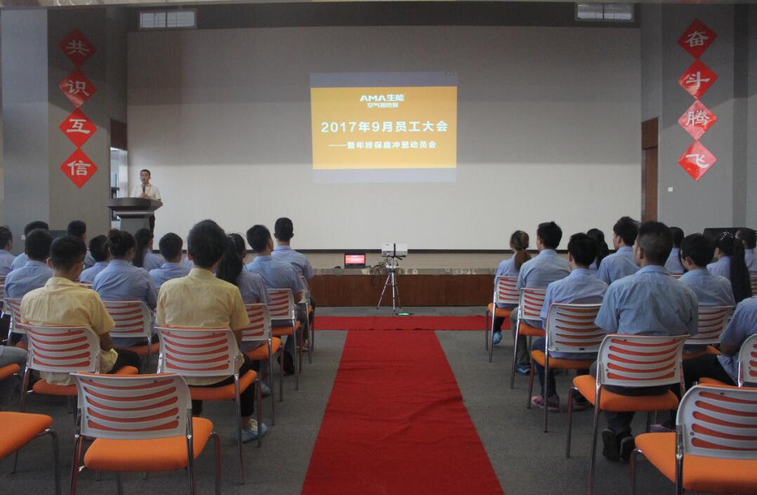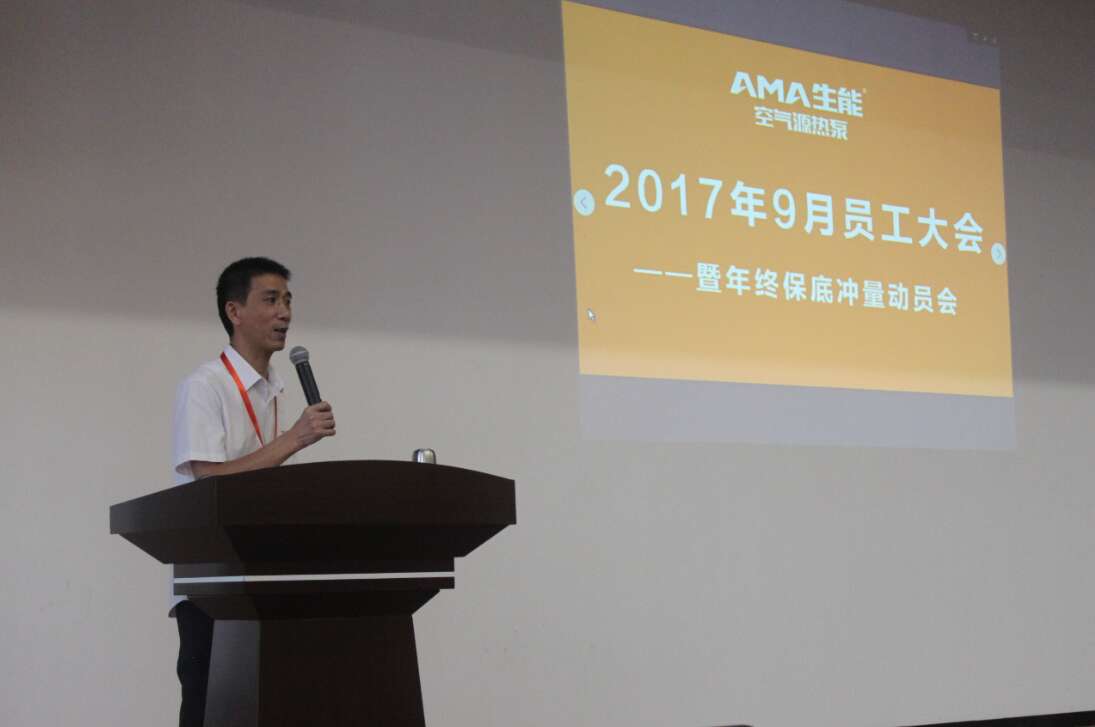 2017年9月16日,2017年9月員工大會(huì)-----暨年終保底沖量動(dòng)員會(huì)在生能總部隆重舉行,董事長(zhǎng)黃道德、董事長(zhǎng)助理黎平、副總白寶紅、工程事業(yè)部副總監(jiān)張躍祖、家用事業(yè)部副總監(jiān)張勇參與會(huì)議,生能全體員工展現(xiàn)出向上、蓬勃的面貌和似火的熱情一同迎接大會(huì)的開(kāi)始,大會(huì)由工程事業(yè)部何立峰主持。