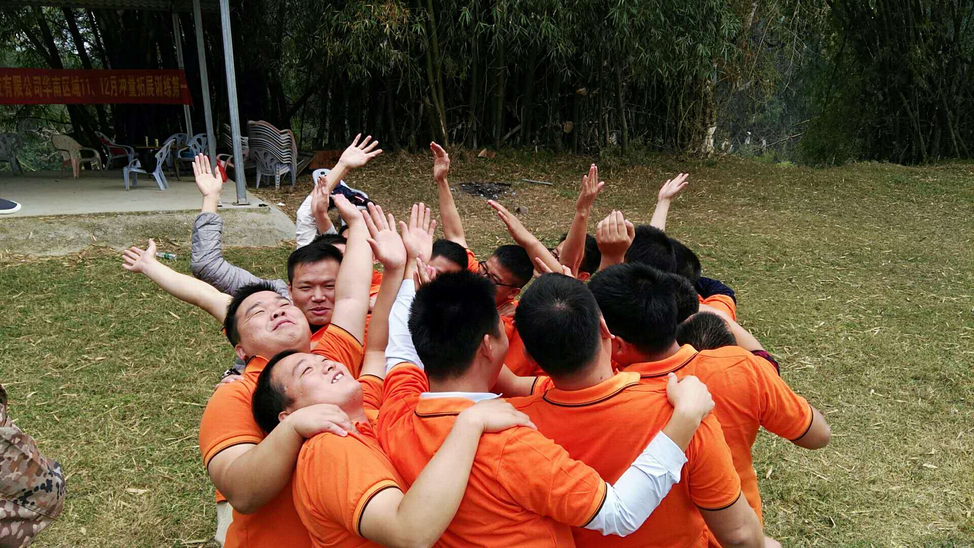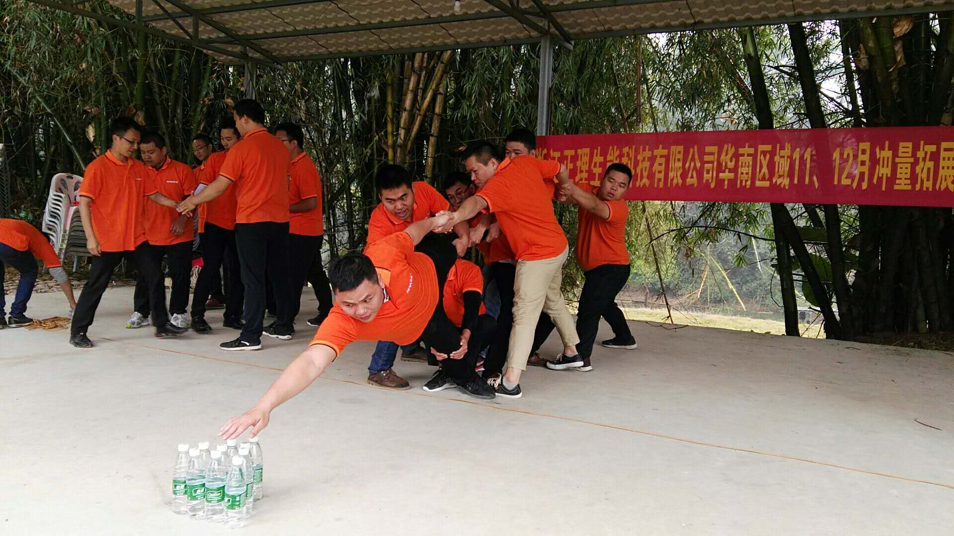 華南團(tuán)隊(duì)17名隊(duì)員分為“屠牛隊(duì)”、“神牛隊(duì)”2個(gè)小組,并制定了各自的口號(hào),同時(shí)繪制了隊(duì)旗,進(jìn)行了團(tuán)隊(duì)建設(shè)、團(tuán)隊(duì)融合、團(tuán)隊(duì)展示;隨后在教練的指導(dǎo)下,各隊(duì)隊(duì)員參加了萬(wàn)里長(zhǎng)城永不倒、雷區(qū)取水、孤島求生、極速60秒、支援前線等精心設(shè)計(jì)的團(tuán)隊(duì)游戲;整個(gè)拓展中,華南團(tuán)隊(duì)的隊(duì)員們個(gè)個(gè)熱情高漲,全力投入;團(tuán)隊(duì)合作精神、配合意識(shí)的重要性,也隨著趣味盎然的拓展訓(xùn)練逐步得到有力印證,訓(xùn)練結(jié)束后,全體隊(duì)員還集體合影留念。