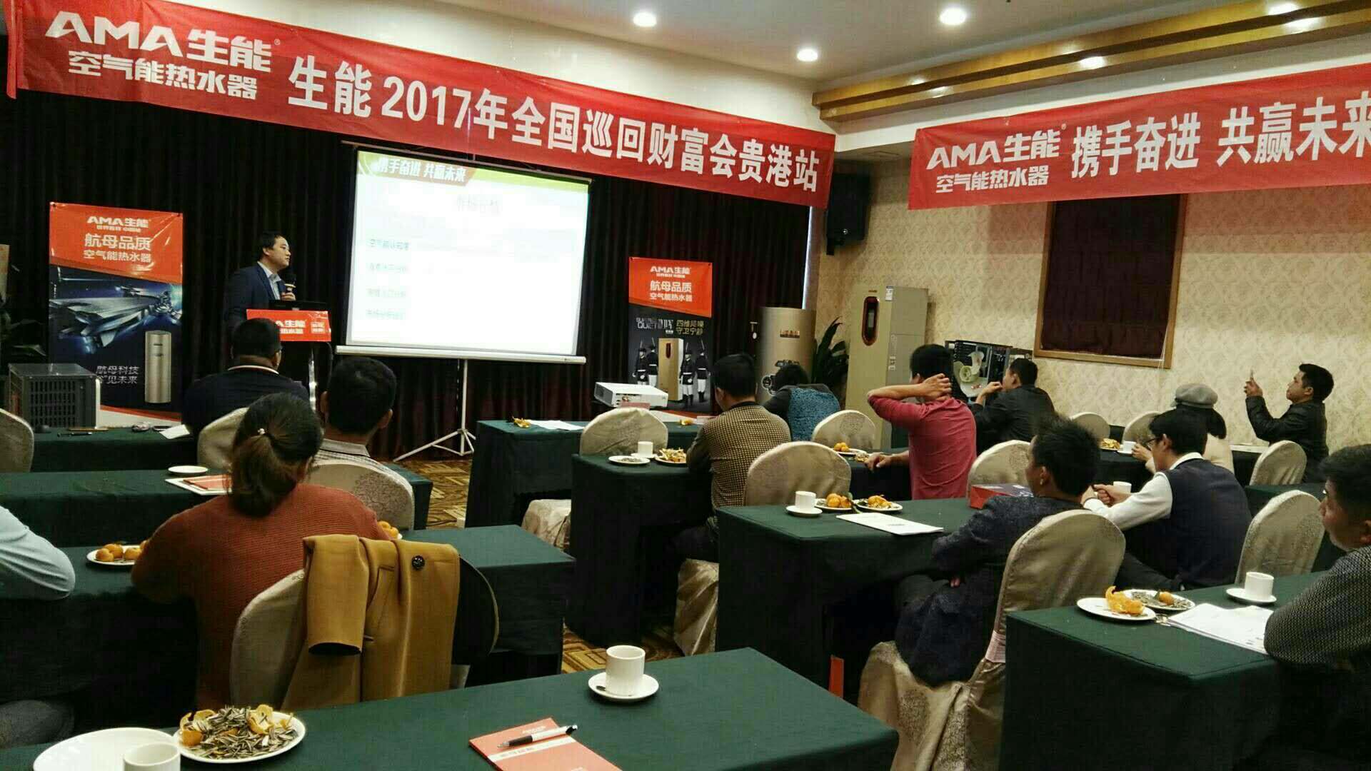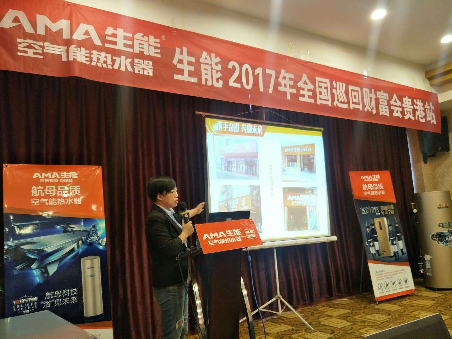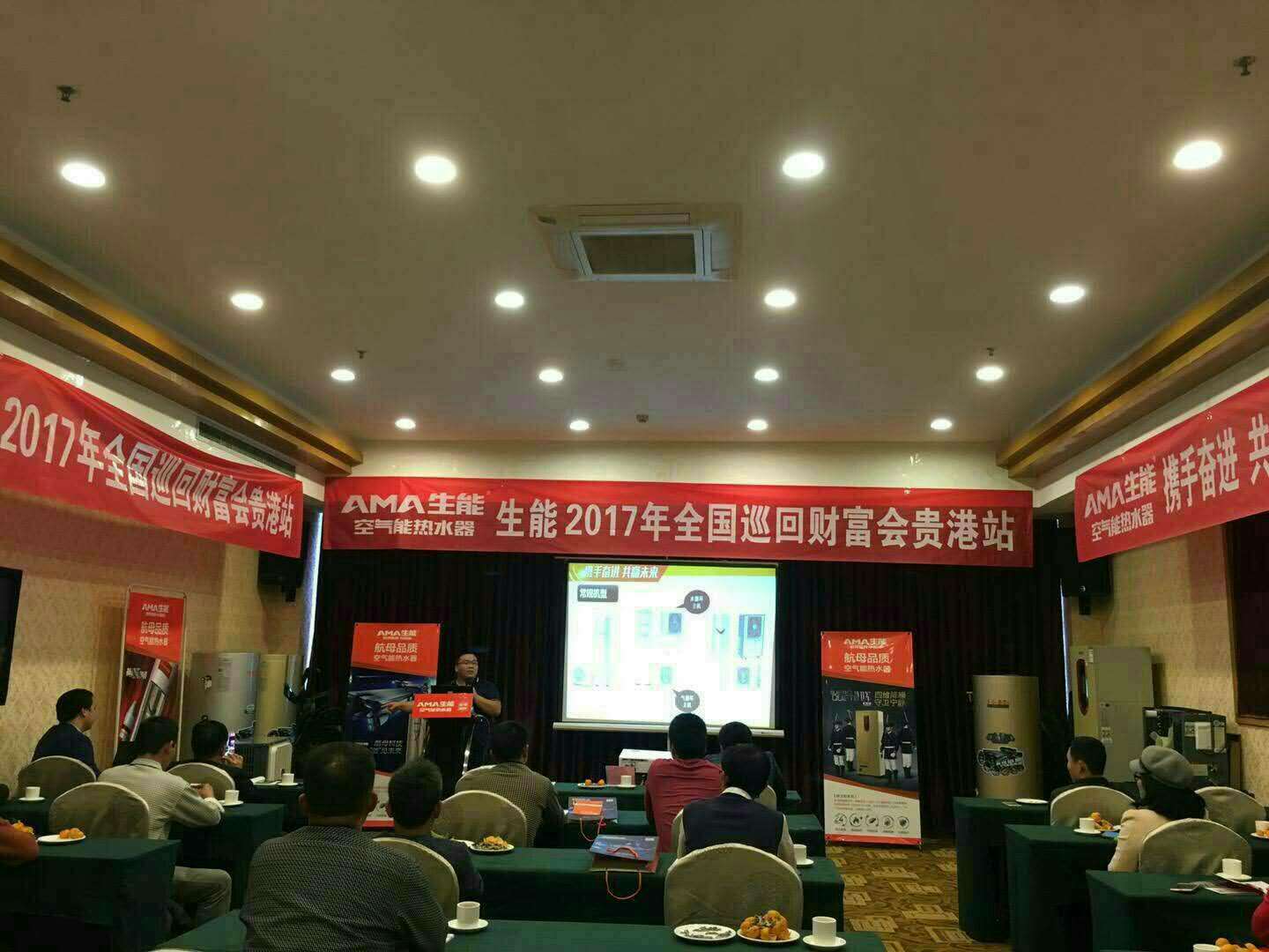 2017年11月30日,生能空氣能全國巡回創富會在貴港市俊美國際大酒店盛大舉行,生能家用事業部副總監張勇、華南大區那華、廣西省區鄒希及廣西各駐地經理們參與會議;生能此次廣西貴港招商會吸引了貴港市眾多新老經銷商,他們帶著對生能的信心和期望前來參加,會議現場人頭攢動,熱鬧非凡。