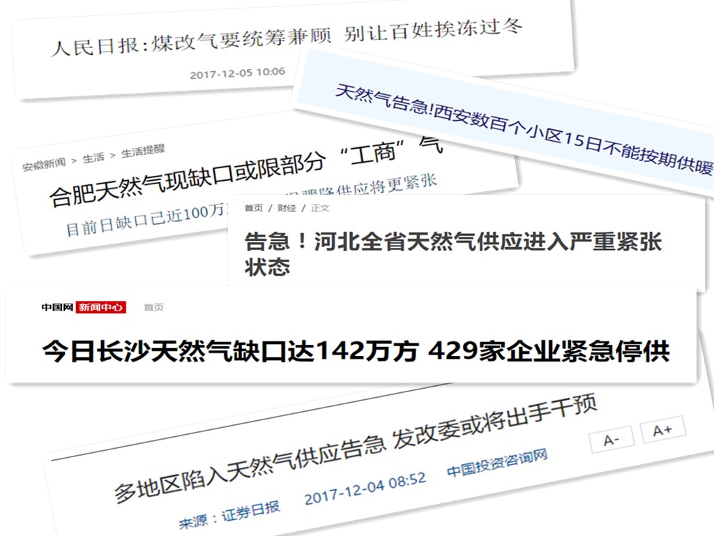 由于天然氣消費(fèi)具有明顯的季節(jié)性,夏季需求疲軟而冬季旺盛,所以入冬以來,受北方地區(qū)取暖需求增加,以及部分氣源不穩(wěn)定等因素影響,天然氣的供需矛盾日益突出,形勢(shì)日趨嚴(yán)峻;此外,由于“煤改氣”操之過急,一哄而上,工程量巨大的“煤改氣”使通氣基礎(chǔ)設(shè)施建設(shè)根本跟不上。