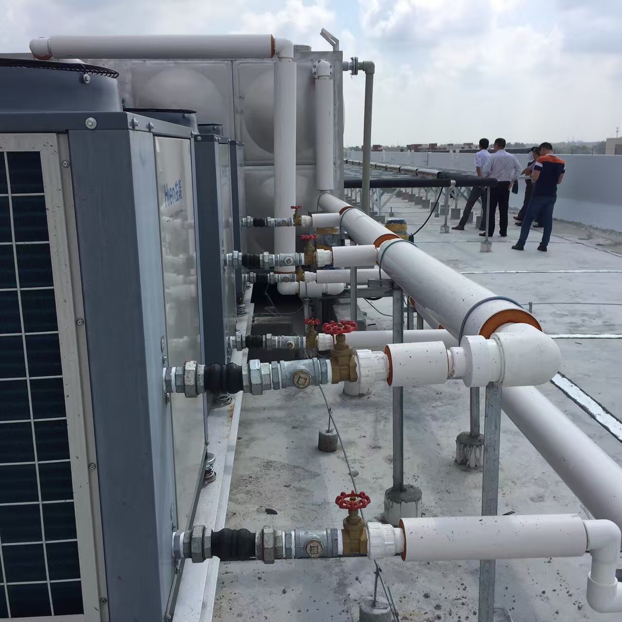 從項目負責人孟經理處了解到,整個項目的方案設計是在充分了解校方熱水需求及實地勘測環境狀況的前提下進行,然后根據現場實際情況確定管路、水箱等的合理布置,確定熱水設備的選型并優化熱水系統的設備匹配,最后精心調試熱水系統組件,確保熱水系統穩定、高效運行。生能在熱水系統安裝、調試過程中關注每一個細節,全程跟蹤服務,確保工程質量的同時,更充分提升系統可靠性。