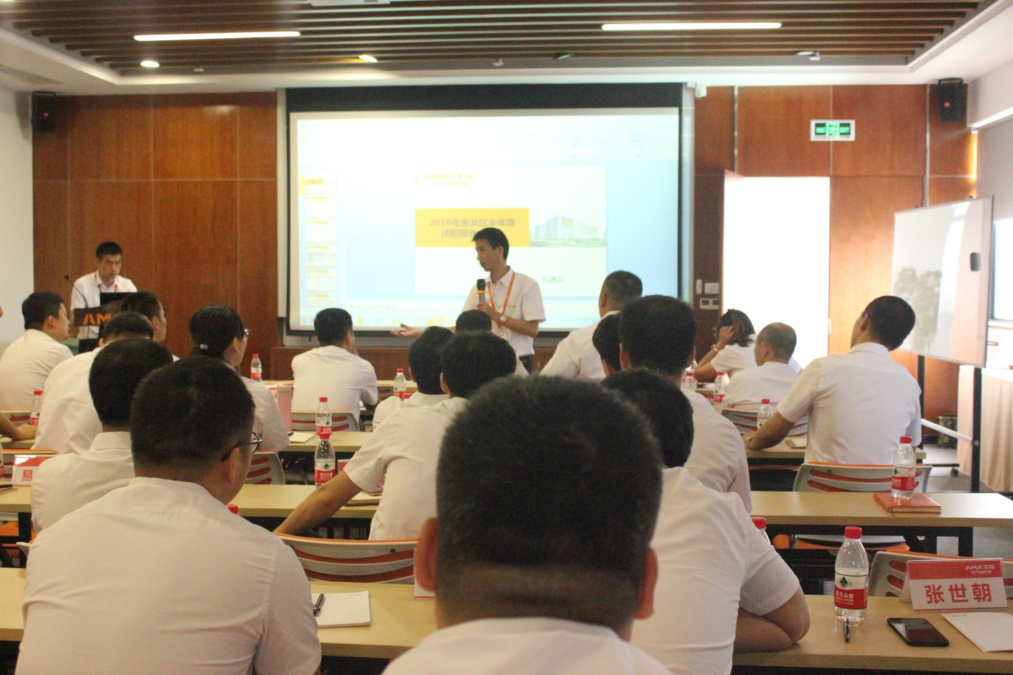 在張總細(xì)致全面的總結(jié)后,山東、安徽、東北三省、天津、西北大區(qū)等各省區(qū)、大區(qū)依次進行了2018年上半年總結(jié)性述職報告。各省區(qū)、大區(qū)分別對各自區(qū)域開展的核心市場工作進行了深刻的總結(jié)、剖析和自我檢討,并針對2018上半年工作中拓渠、建店、開商等方面出現(xiàn)的問題和不足,提出了改進建議和措施,以確保2018下半年的工作有質(zhì)和量的跨越,爭取早日達(dá)成2018年全年的總目標(biāo)。針對2018年下半年的工作計劃,各省區(qū)、大區(qū)均表示將在扶持培訓(xùn)終端、打造標(biāo)桿性工程樣板、品牌推廣等方面全面發(fā)力。