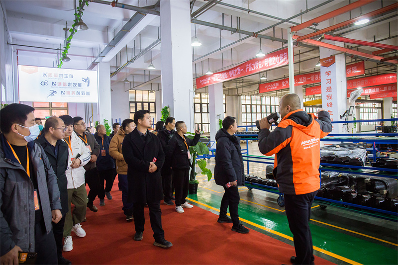 今天生能空氣能公司現場,紅地毯、吊旗、簽名墻、拱門、指示牌等一 一布置起來,為了迎接經銷商們參觀工廠。下午,每隔半小時就有一輛專車將經銷商從入住酒店送往公司參觀工廠,人員絡繹不絕。現場,公司講解人員為一批接一批參觀經銷商介紹生能空氣能MES系統、遠程控制中心、展廳機組、部裝分廠、總裝分廠等。通過零距離實地參觀,經銷商們見證了生能空氣能強大的生產實力、數字化轉型、領先業內的核心技術及產品優勢,切實了解生能空氣能的方方面面。