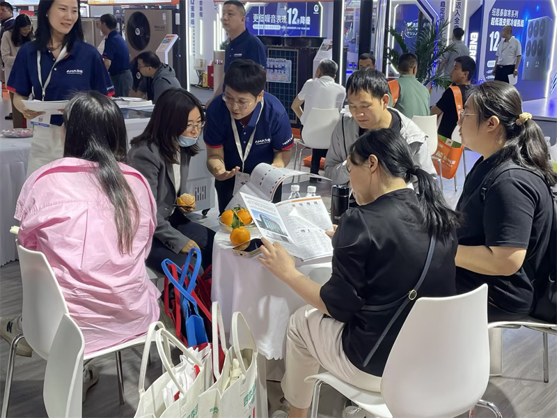 在生能空氣能展位E4-03現場,人員絡繹不絕,國際友人陸陸續續光顧,全國設計院總工團也現場觀摩。他們近距離了解生能品牌、產品、技術、服務等綜合實力,同時很多人對生能空氣能產品的性能、材質、參數、應用場景等做進一步交流了解。