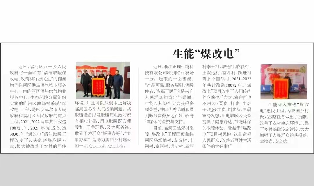 近期,浙江正理生能科技有限公司收到內蒙古巴彥淖爾市臨河農場一分廠送來的一面錦旗。錦旗上赫然顯示寫著“產品可靠、服務周到、供暖使者、造福于民”幾個大字,樸實的老百姓以這種方式表達對生能空氣能的肯定和感謝。這一事件也被《巴彥淖爾晚報》專門刊登。詳情如下: