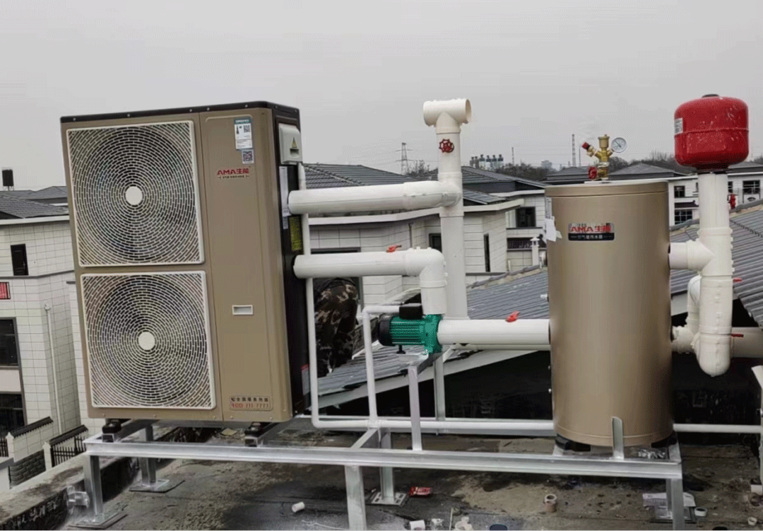 選用兩臺生能空氣能地暖空調。