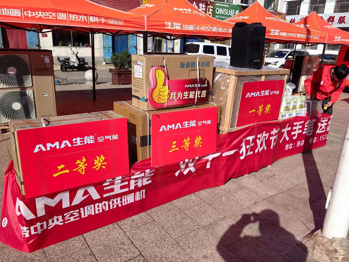 “買生能空氣能機組就可參與抽獎獲取豪禮;客戶來了不管訂不訂都能免費吃大餐;客戶發現場抖音可免費領水壺,發微信朋友圈免費領圍裙………”這是11月6日在山西長治屯留區張店鎮廣場所舉行的生能空氣能雙十一活動。北方溫度越來越低,生能活動熱度持續升溫。
