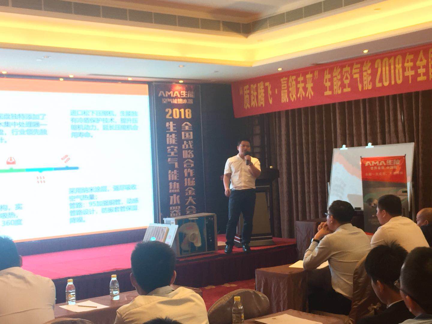 2018年4月27日,以“質(zhì)躍騰飛,贏領(lǐng)未來(lái)”為主題的生能2018年全國(guó)戰(zhàn)略合作掘金大會(huì)·中山站在中山市港口鎮(zhèn)俊誠(chéng)海逸酒店盛大舉辦,盛會(huì)吸引了當(dāng)?shù)卮笈?jīng)銷商的關(guān)注,生能家用營(yíng)銷總監(jiān)張勇、佛山營(yíng)銷中心全員以及三十余名新老經(jīng)銷商們參與本次創(chuàng)富會(huì),共同探討空氣能行業(yè)發(fā)展新思路,共商2018年掘金大計(jì)。