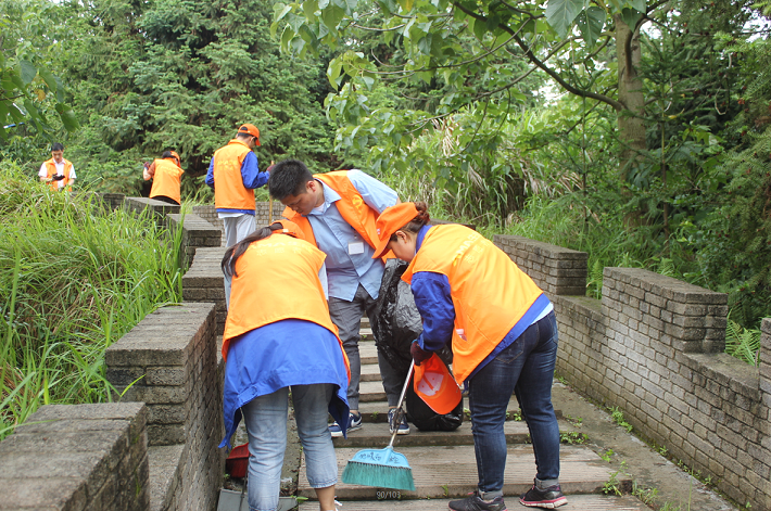 根據(jù)事前合理分工安排,生能黨支部黨員、積極分子及志愿者們按小組有序分散在小長城,他們身著統(tǒng)一服裝,攜帶手套、掃把、夾子、鐵锨、垃圾袋等各種工具,沿著小長城石階一路撿拾落葉、果皮、廢棄物等各類垃圾,并向小長城最高點(diǎn)進(jìn)發(fā)。一路上,大家發(fā)揚(yáng)“不怕臟、不怕累”的奉獻(xiàn)精神,認(rèn)真努力的撿拾沿路垃圾,小組間相互配合、相互協(xié)助,熱情高漲。