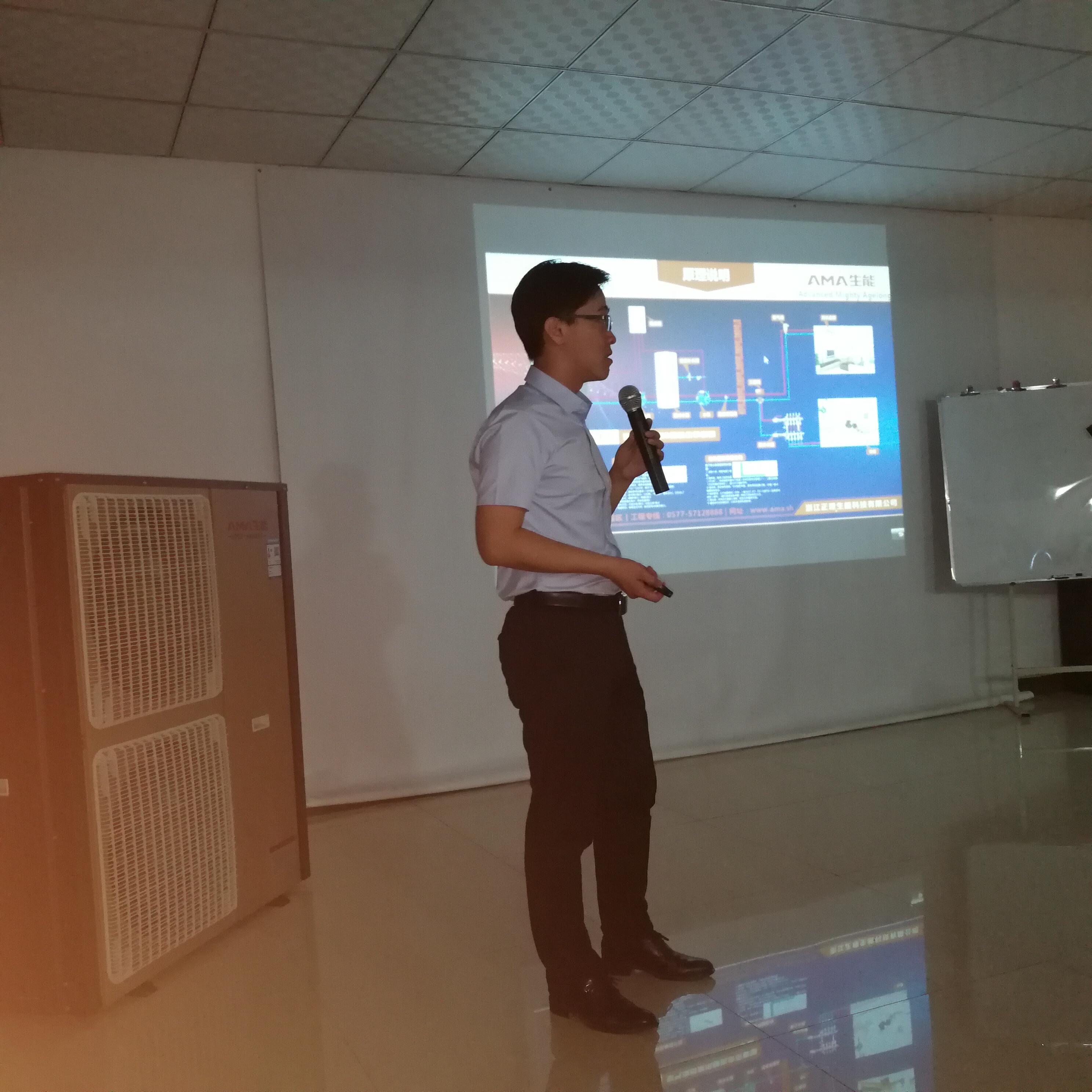 最后,由生能山東濟(jì)南區(qū)域經(jīng)理馮經(jīng)理為經(jīng)銷商們解讀生能空氣源熱泵熱水機(jī)、冷暖機(jī)的關(guān)鍵知識(shí)及具體運(yùn)用。馮經(jīng)理以生能實(shí)力打造的優(yōu)質(zhì)、經(jīng)典工程案例為入手點(diǎn),對(duì)生能熱泵機(jī)組做了全面、詳細(xì)的分析說(shuō)明。在馮經(jīng)理精彩的講解中,經(jīng)銷商們對(duì)產(chǎn)品知識(shí)、工程建設(shè)等掌握上都有了很大的提升。