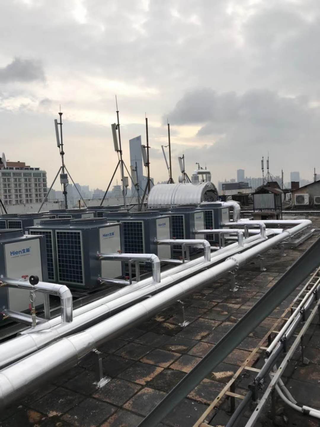該項目共566間客房,要求使用原有樓頂80噸水池存水并新制一個5噸承壓水箱,日需熱水量為68噸。在項目施工以前,生能積極與甲方進行充分溝通,在對施工場所進行了實地勘察之后進行了專業的熱水方案設計,經過一個月的高效施工,項目高質完成,并順利交付。