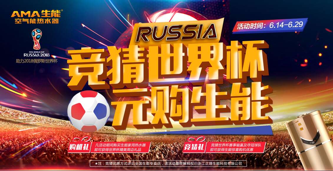6月14日-6月29日,即世界杯小組對抗賽期間內,只要您在生能專賣店購買任意一款生能家用熱水器并預選當天賽程的一支隊伍進行支持, 若您所選球隊在當天賽事中獲勝,即可獲得500元購機優惠;若所選球隊在當天賽事中平手可獲得300元購機優惠;若所選球隊在當天賽事中失利,您也可獲得100元的購機優惠。(注:購機優惠將于賽程次日進行返還)